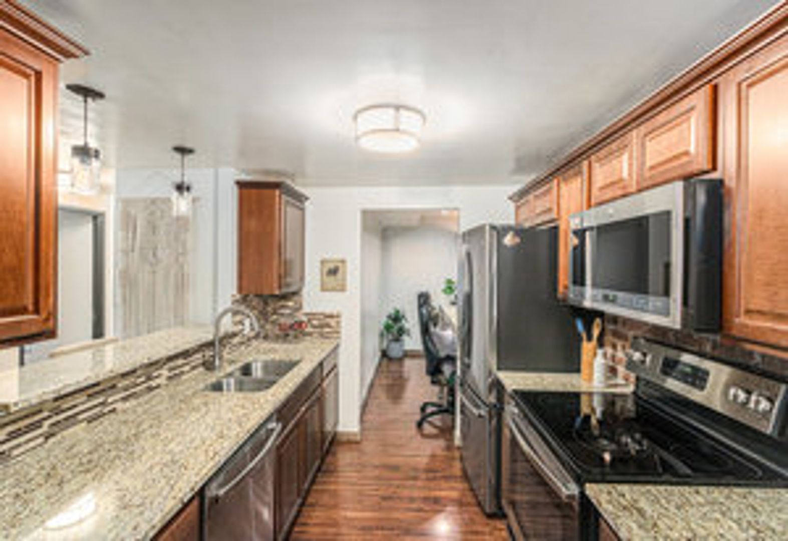 Imagine living in Old Town. This gem is located on the second floor of the North Tower at Park Lane Towers, this 2-bedroom, 1-bath condo offers a perfect blend of farmhouse charm and modern convenience. You'll love the exposed brick walls, weathered wood accents, granite countertops, and durable laminate flooring throughout. The kitchen features a spacious walk-in pantry-perfect for storage, prep space, or converting into an in-unit laundry. Enjoy Colorado sunshine from your private balcony/ This unit includes a reserved 1-car covered parking space, and guest parking is available between the North and South towers. TVs and fireplace are included. Building amenities include an indoor pool, seasonal outdoor pool, hot tub, sauna, fitness room, game/recreation room, extra storage, common laundry, elevator, and secure building entry. The monthly HOA covers all utilities-including high-speed internet-trash, snow removal, building security. The owner pays the HOA. Located in Old Town Fort Collins, this home offers comfortable, low-maintenance living in a well-maintained building. Call Trilogy Property Management to schedule your showing 970-404-1767. This property won't last long. If you would like to rent this property furnished we can offer it for $2400 All leases are year long. RENT COVERS UTILITIES!!!!