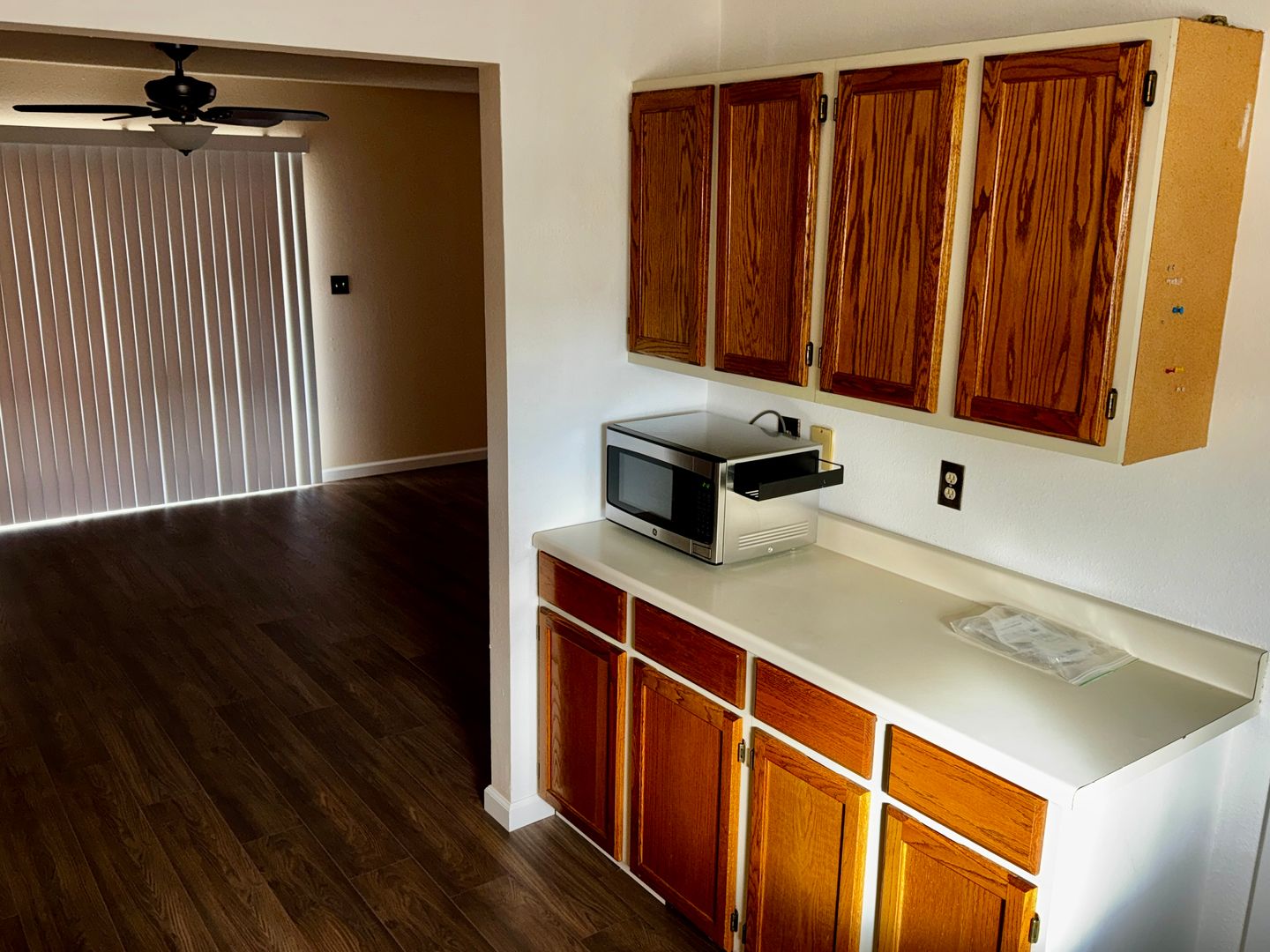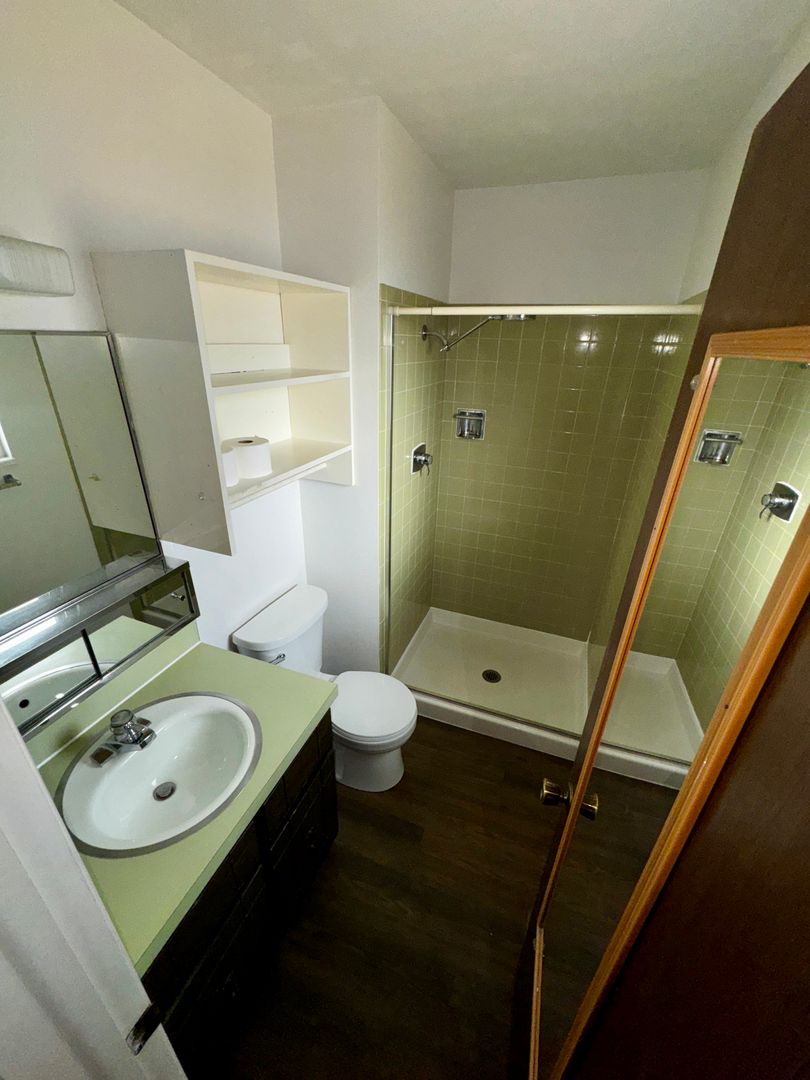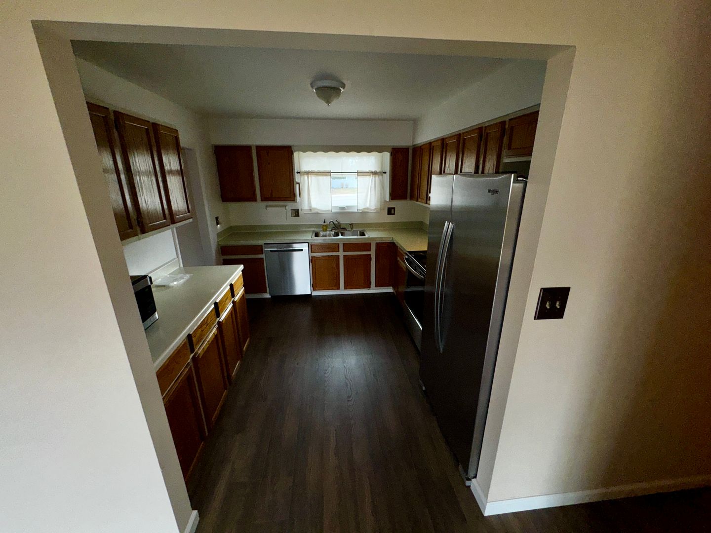 The kitchen has stainless steel appliances, lots of great counter space to create your meals. The space also has a nice window to allow lots of sunlight in.
